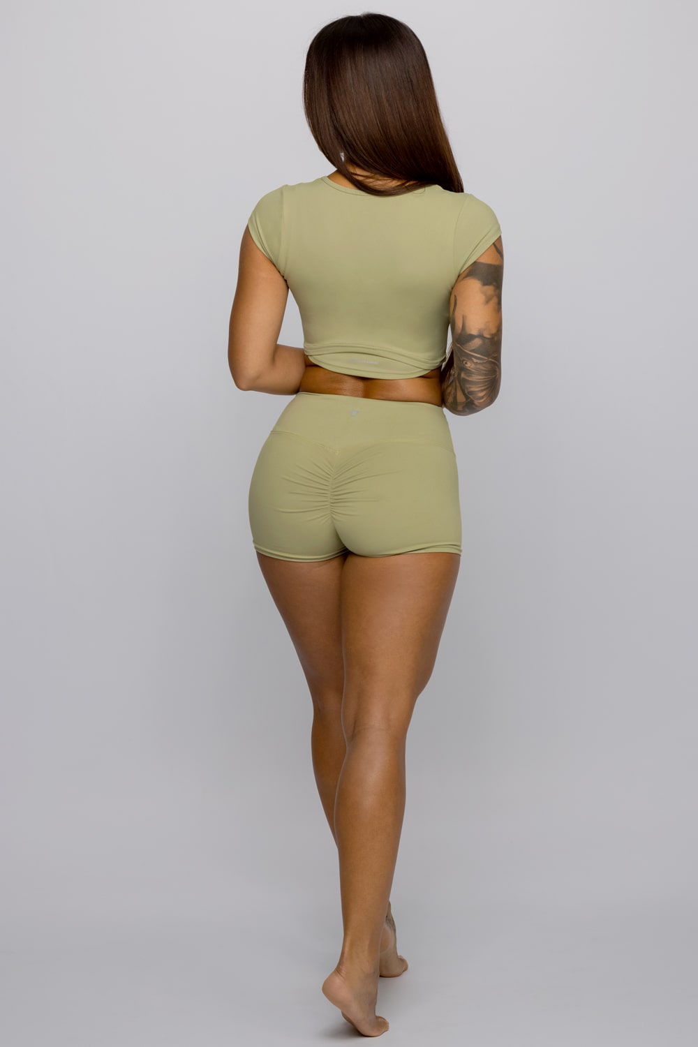 The Nikari Crop Top from PHUTURE: Made with our performance blend of Nylon/Spandex. Pair with the matching scrunched shorts to extra style.